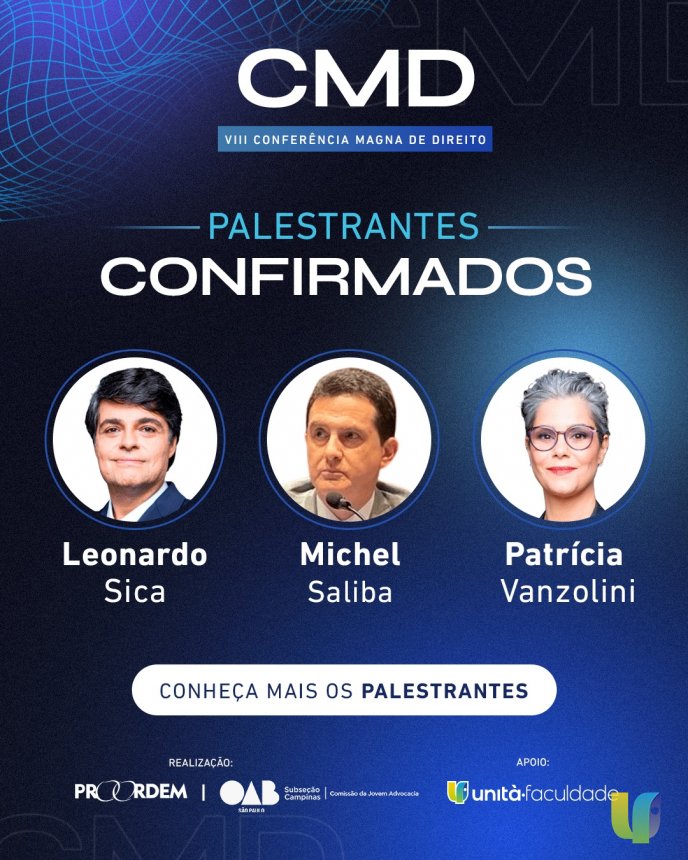 Promovida pelo PROORDEM - Centro de Estudos Jurídicos e Comissão da Jovem Advocacia da OAB e com o apoio da Unità Faculdade, a conferência reúne especialistas reconhecidos para um diálogo aprofundado sobre regulamentação, responsabilidade civil, criminal, direitos autorais, relações consumeristas e os desafios éticos dessa nova fronteira do direito.